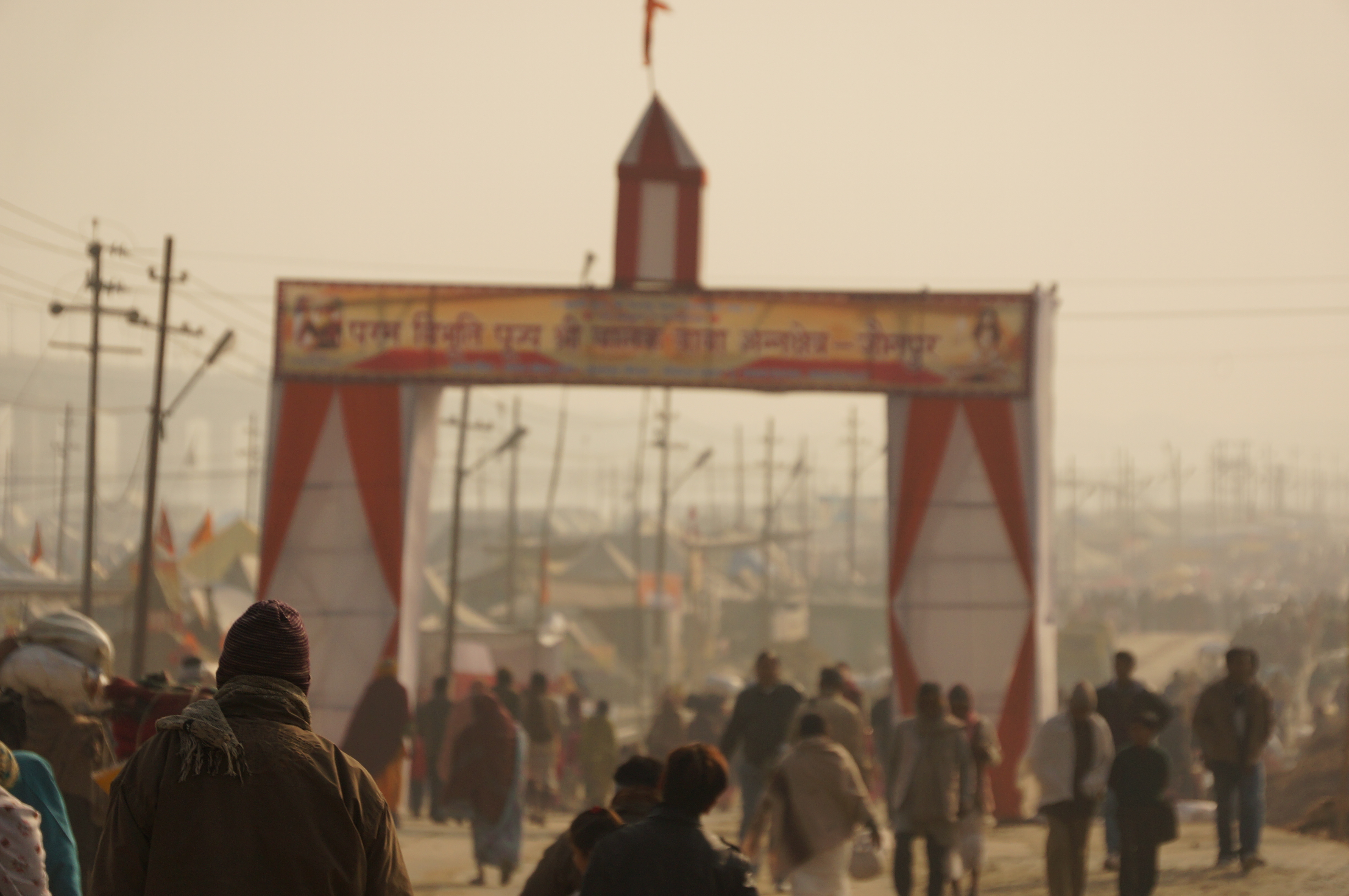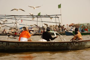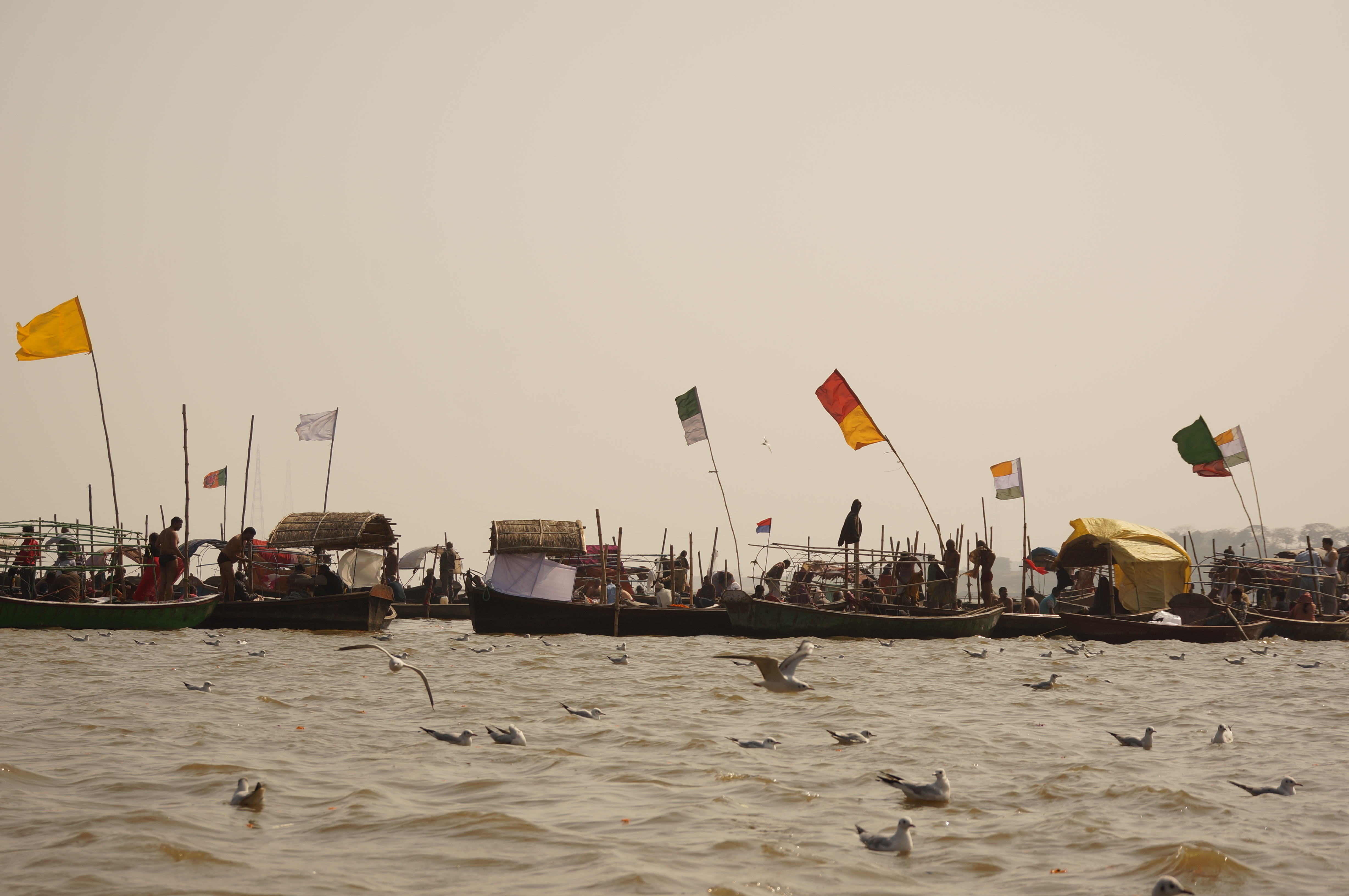 Imagine to be on a boat… trying to reach the Magh Mela… All the streets are closed because one of the holiest day to take bath is about to come..to reach the Mela then, from the centre of Allahabad is in itself a kind of pilgrimage. Why are you there? You are there because it is believed to be the same place where drops of Nectar fell from the pitcher, from the hands of the Gods. So it is believed that a bath in the Sangam will wash away all one’s sins and will clear the way to heaven.