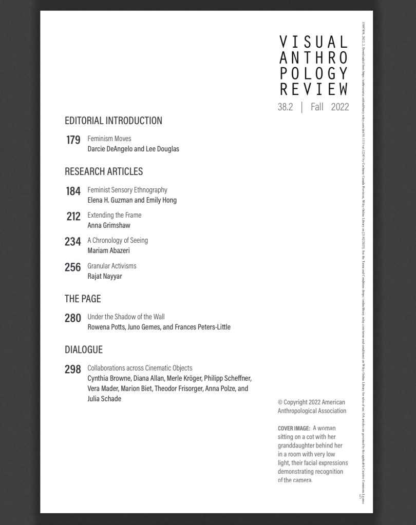 The cover of Visual Anthropology Review (VAR) recent issue 38.2 features Rajat Nayyar’s photograph of Aaji and her granddaughter in Bihar!