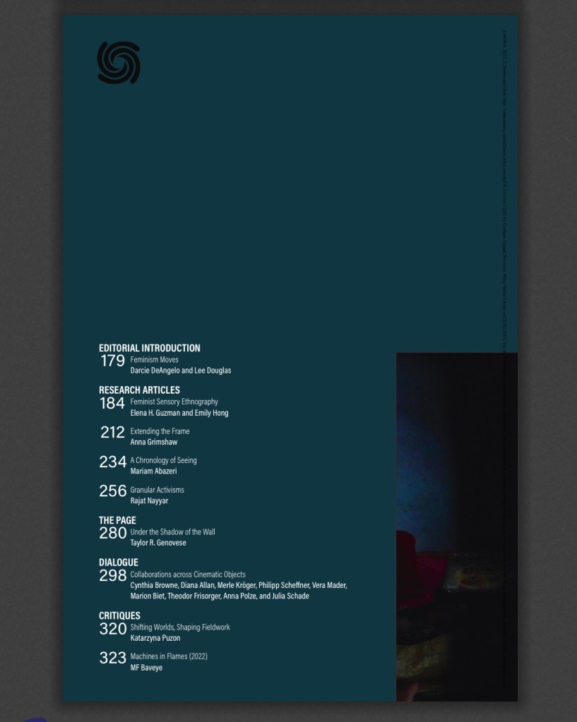 Thank you to the editors for including Rajat’s research article “Granular Activisms: Women’s Vocality and Multimodality in Rural North India” alongside excellent scholarship that pushes the boundaries of Visual Anthropology!
